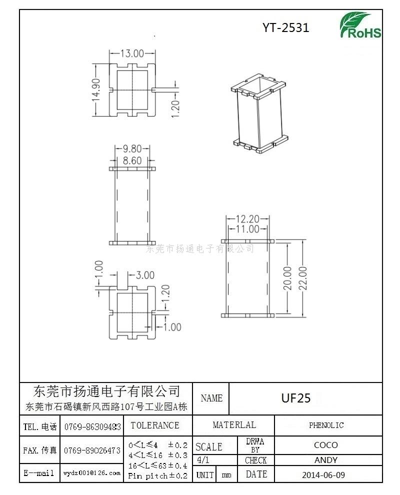 UU25变压器骨架UF25电木骨架UF25高频骨架立式骨架 YT-2531