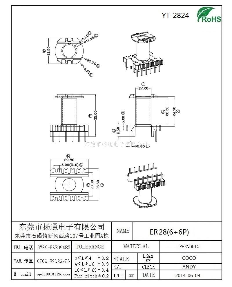 ER28电木骨架ER28变压器骨架 ER28高频骨架ER28单槽骨架立式6+6 YT-2824