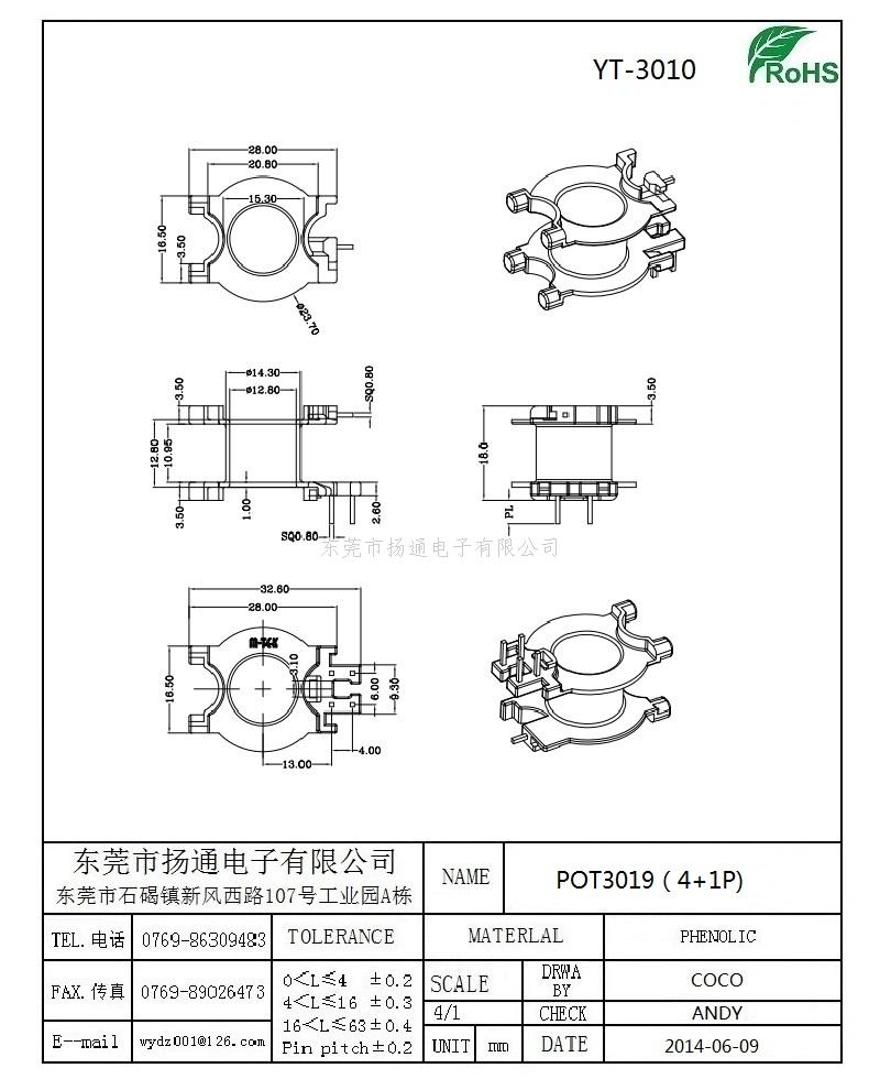 POT3019电木骨架POT3019变压器骨架 POT3019高频骨架POT3019单槽骨架立式4+1 YT-3010