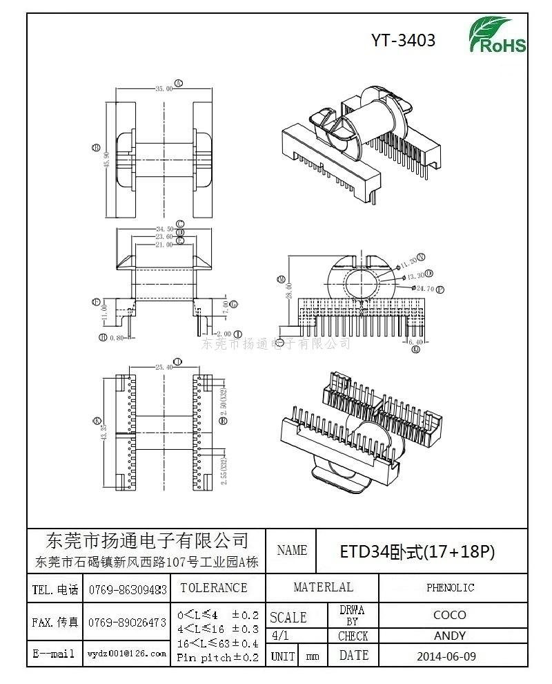 ETD34电木骨架ETD34变压器骨架 ETD34高频骨架ETD34单槽骨架卧式17+18 YT-3403