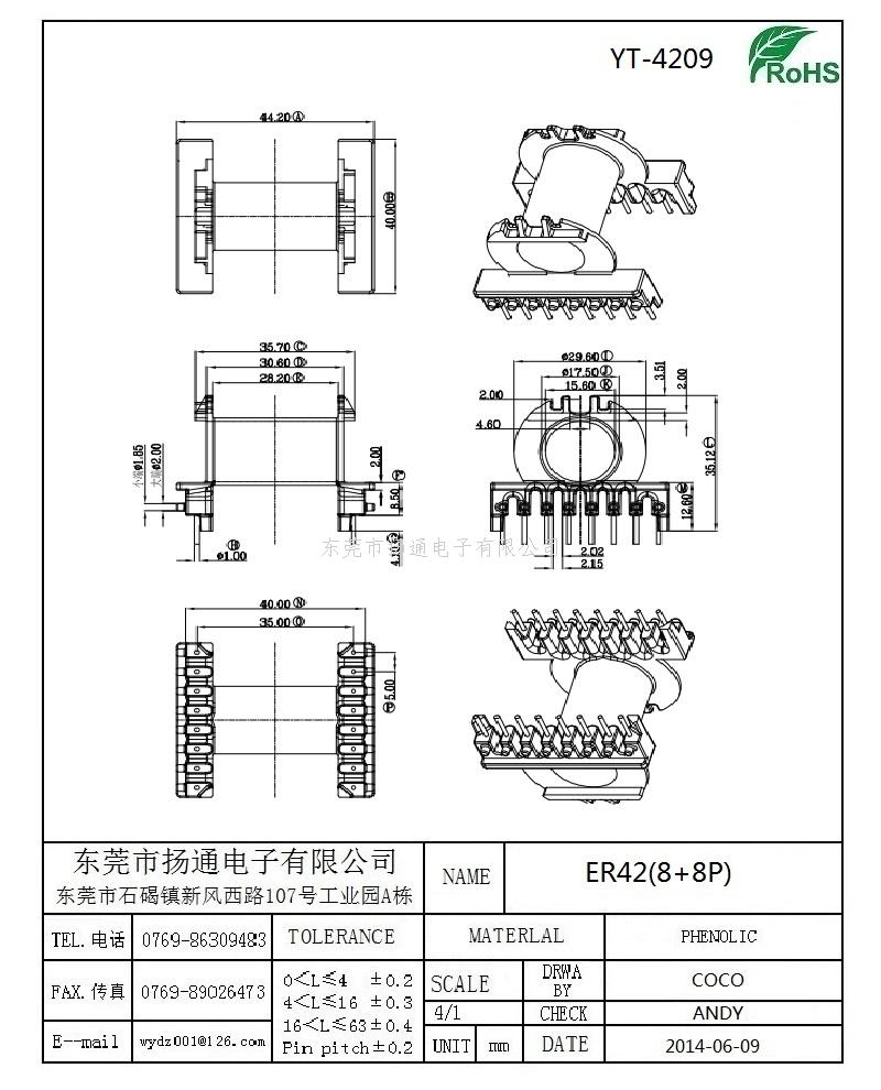 ER42电木骨架ER42变压器骨架 ER42高频骨架ER42单槽骨架卧式8+8 YT-4209