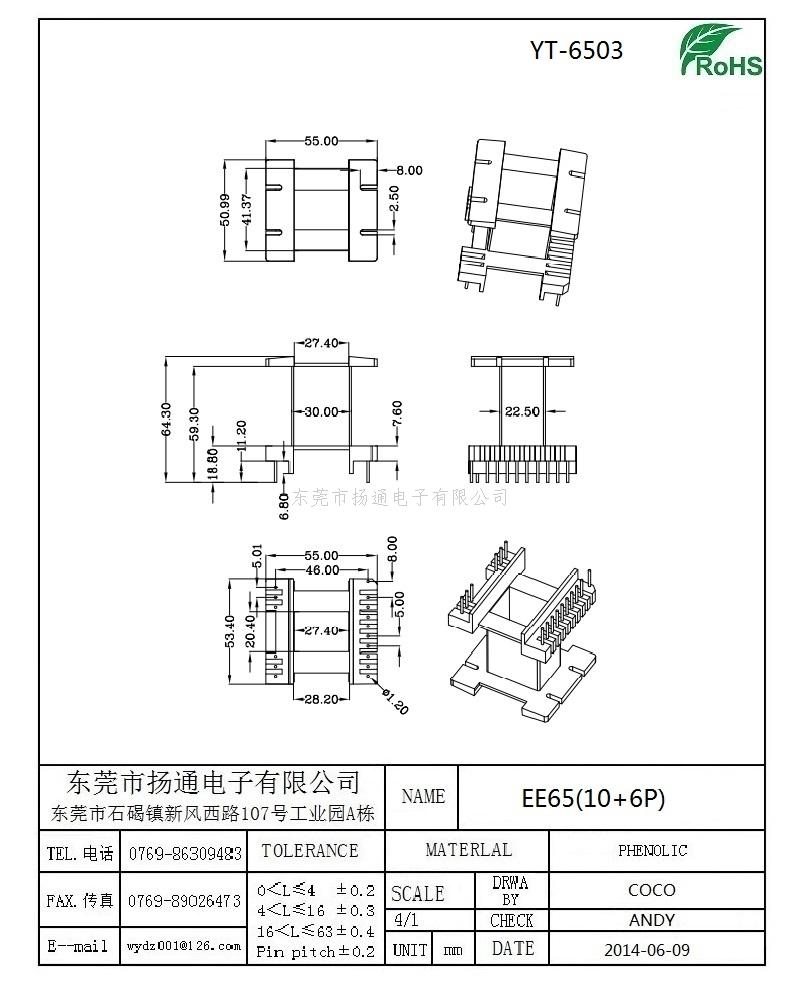 EE65电木骨架EE65变压器骨架 EE65高频骨架EE65单槽骨架立式10+6 YT-6503
