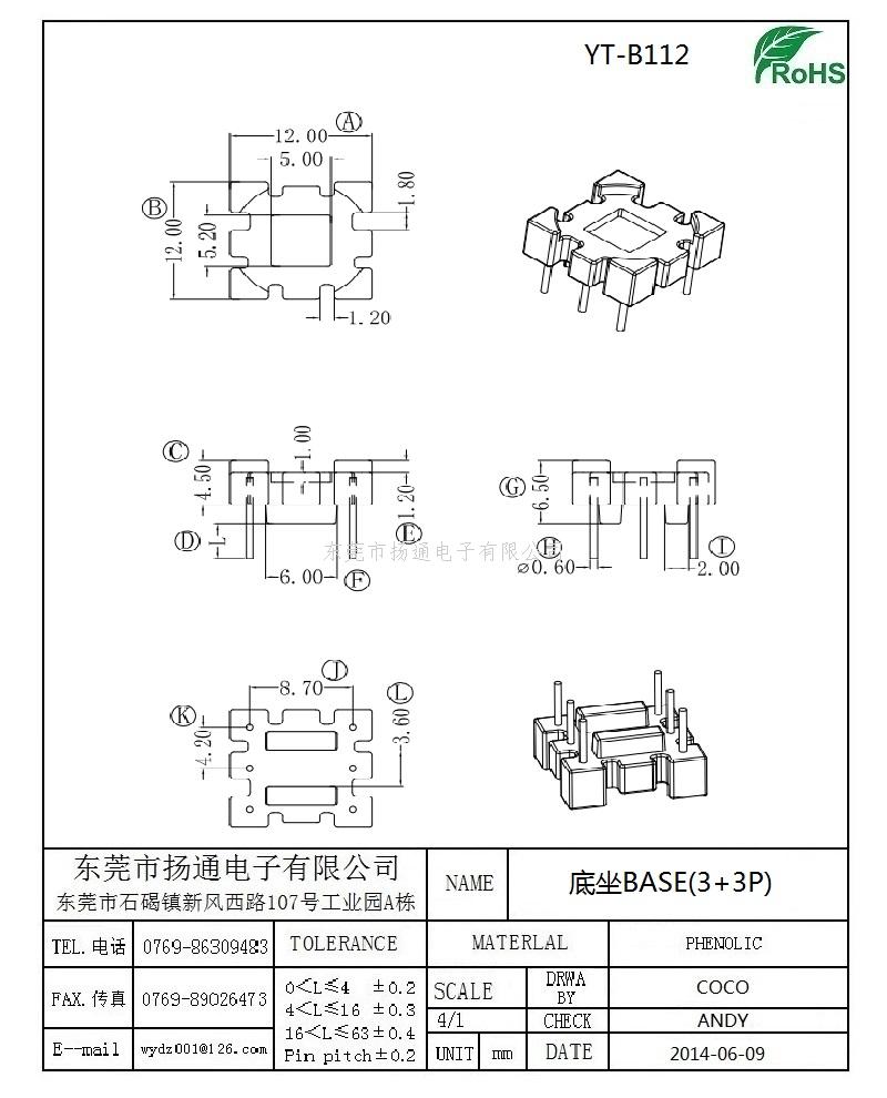 磁环底座 基座 BASE(3+3) 变压器骨架,贴片式骨架 YT-B112