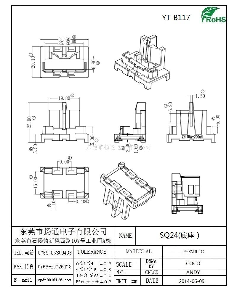 SQ24变压器骨架SQ24电木骨架SQ24电源骨架SQ24贴片骨架SQ24骨架SMD BOBBIN YT-B117