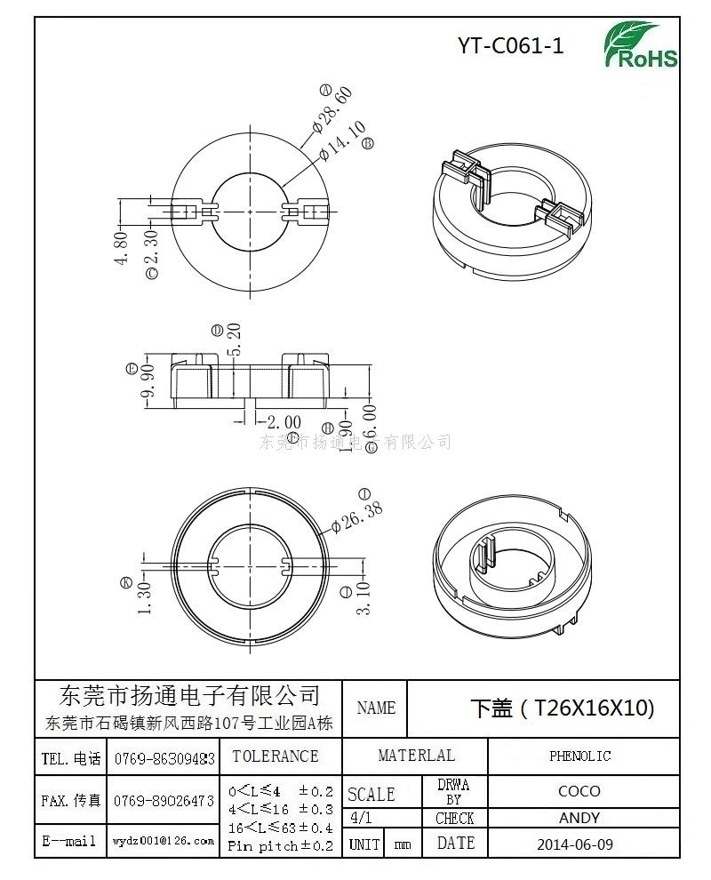 [下一个:磁环外壳 CASE电感护壳底座 基座 T26x16x10 COVER变压器骨架,贴片式骨架 YT-C061上盖]
