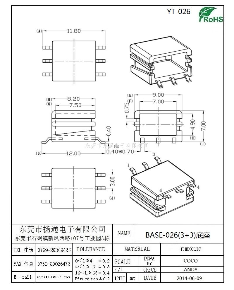磁环底座 电感底座 基座BASE(3+3) 变压器骨架,贴片式骨架YT-026