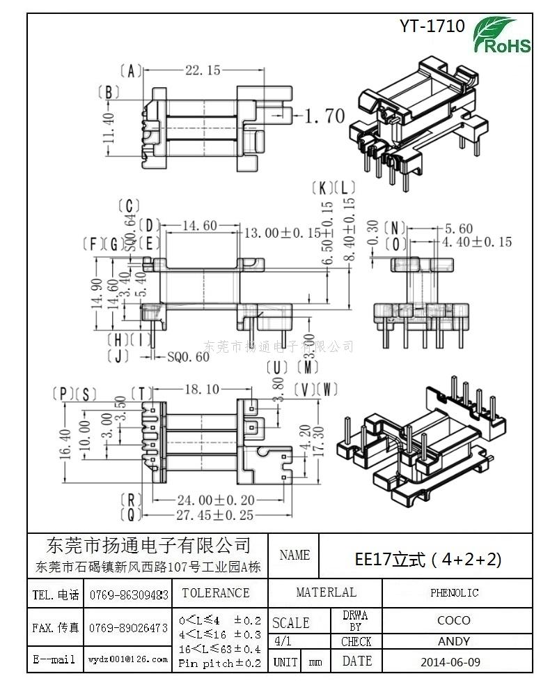 EE17变压器骨架EE17电木骨架EE17高频骨架 立式单槽4+2+2P YT-1710