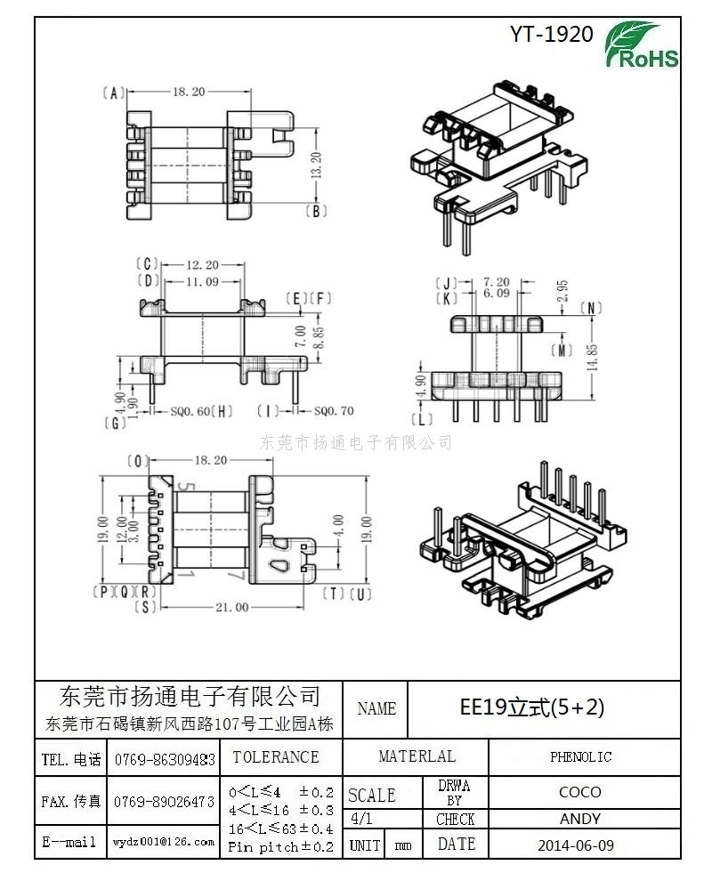 EE19变压器骨架EE19电木骨架EE19高频骨架 立式5+2P YT-1920