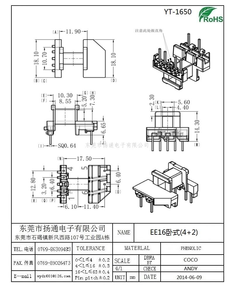 EE16变压器骨架EE16电木骨架EE16高频骨架 卧式4+2P YT-1650