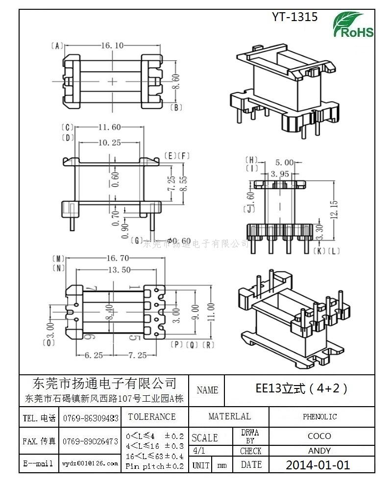 EE13变压器骨架EE13电木骨架EE13高频骨架 立式4+2P YT-1315
