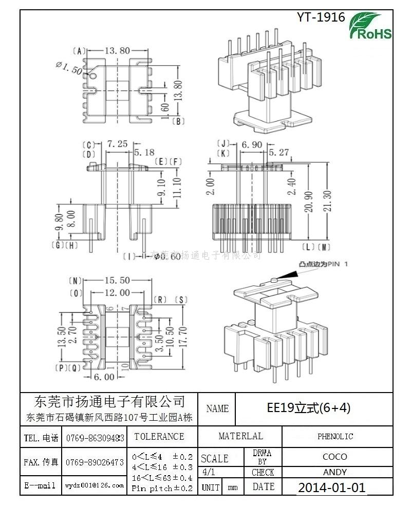 EE19变压器骨架EE19电木骨架EE19高频骨架 立式6+4P YT-1916