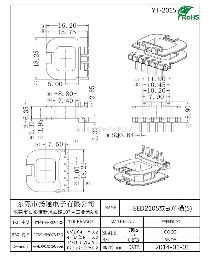 EED2015变压器骨架EED2015电木骨架EED2015高频骨架 立式5P YT-2015