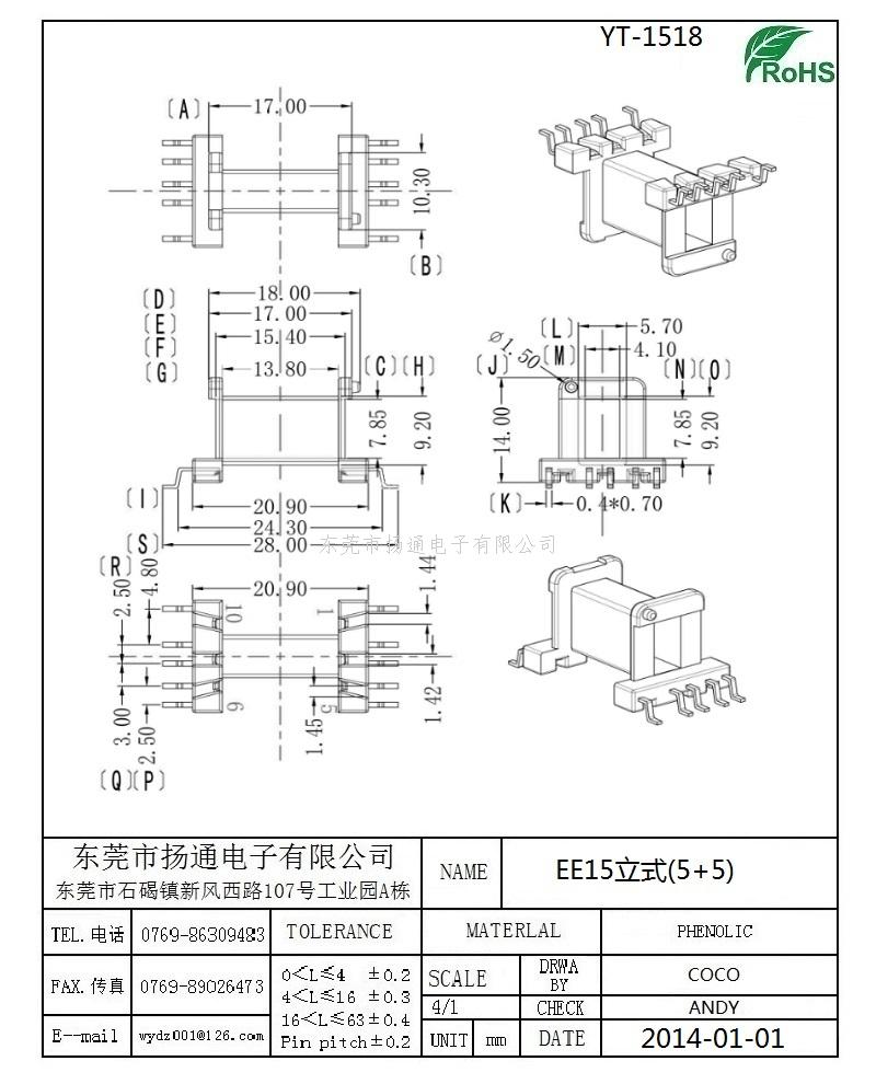 [下一个:EED2015变压器骨架EED2015电木骨架EED2015高频骨架 立式5P YT-2015]