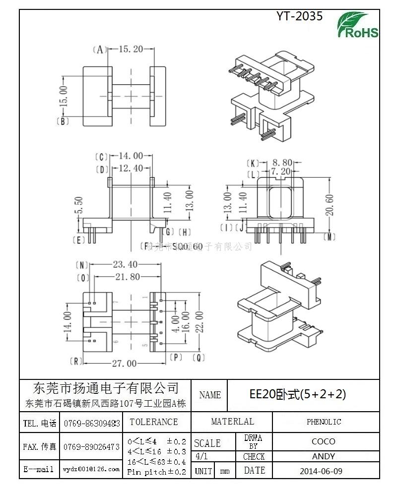 EE20变压器骨架EE20电木骨架EE20高频骨架 卧式5+2+2P YT-2035