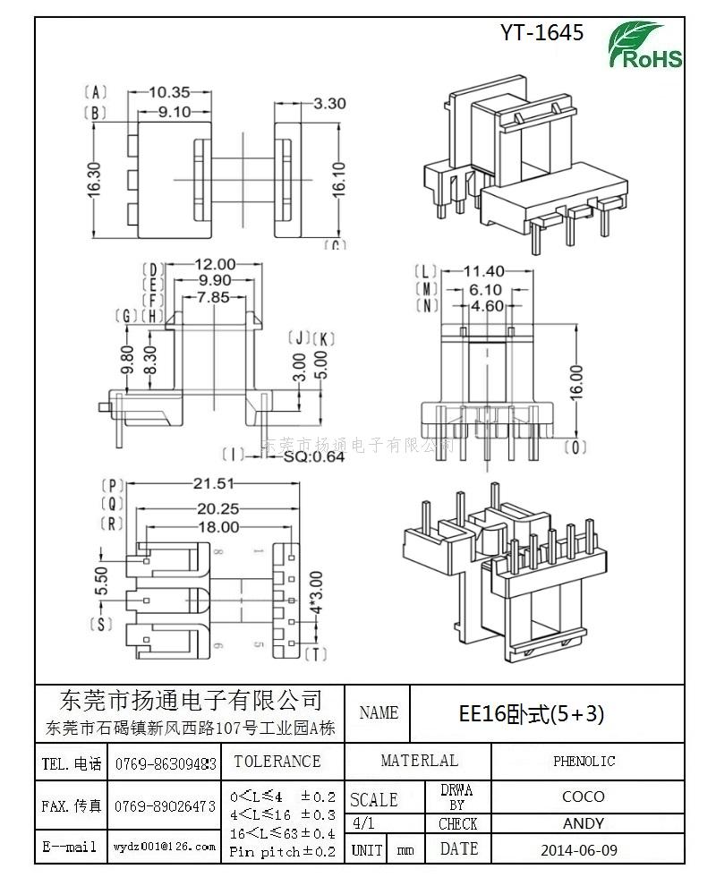 变压器骨架EE16电木骨架EE16高频骨架 卧式5+3P YT-1645