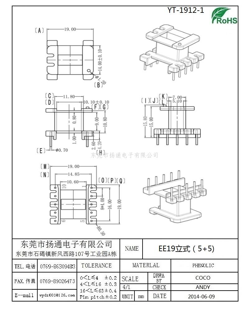 EE19变压器骨架EE19电木骨架EE19高频骨架 立式5+5P YT-1912-1