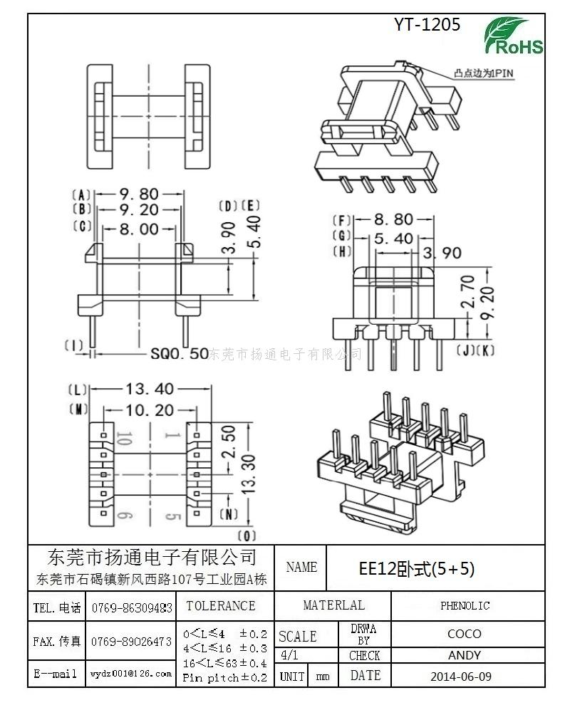 EE12变压器骨架EE12电木骨架EE12高频骨架 卧式5+5P YT-1205