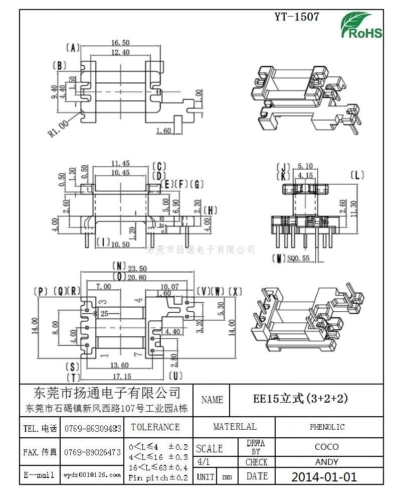 EE15变压器骨架EE15电木骨架EE15高频骨架 立式3+2+2P YT-1507