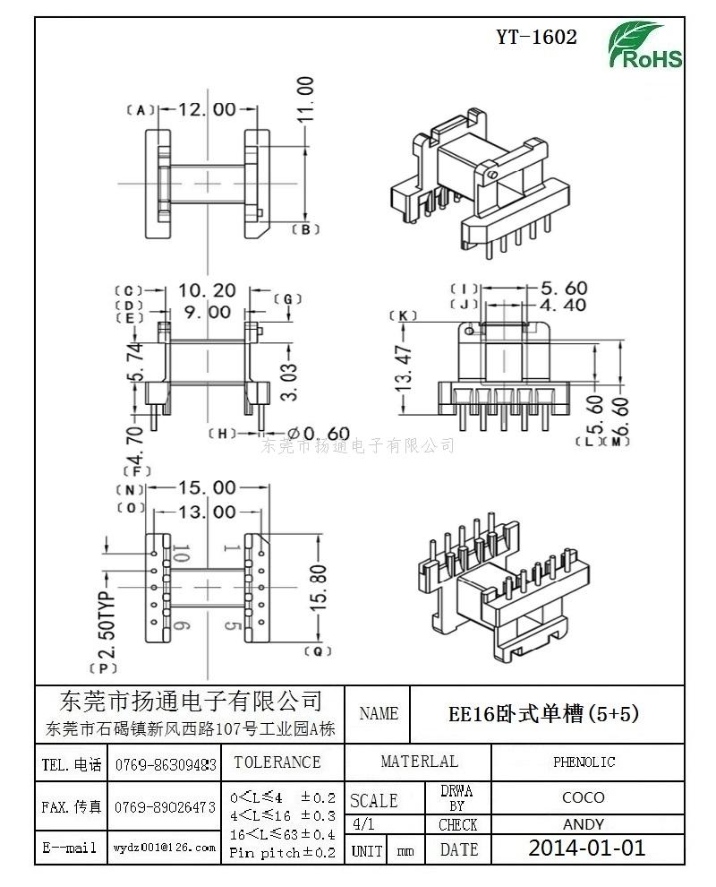 EE16变压器骨架EE16电木骨架EE16高频骨架 卧式单槽5+5P YT-1602
