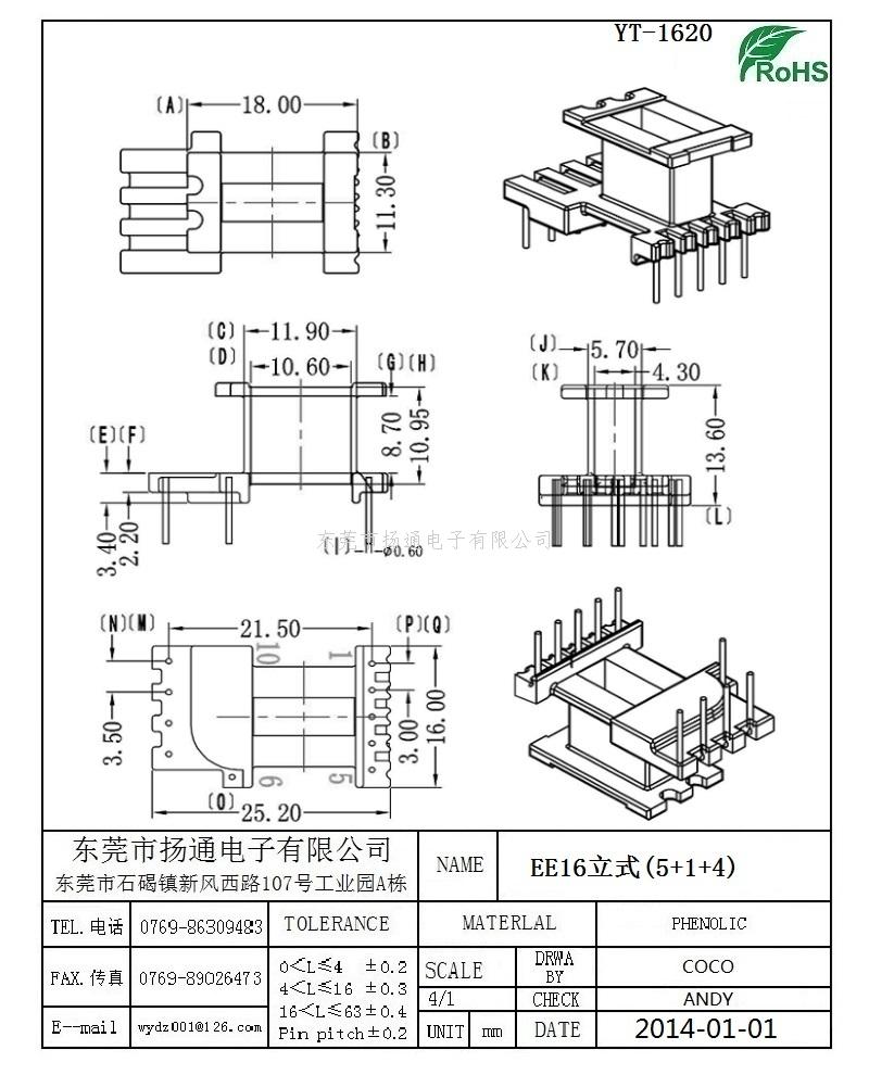 EE16变压器骨架EE16电木骨架EE16高频骨架 立式5+1+4P YT-1620