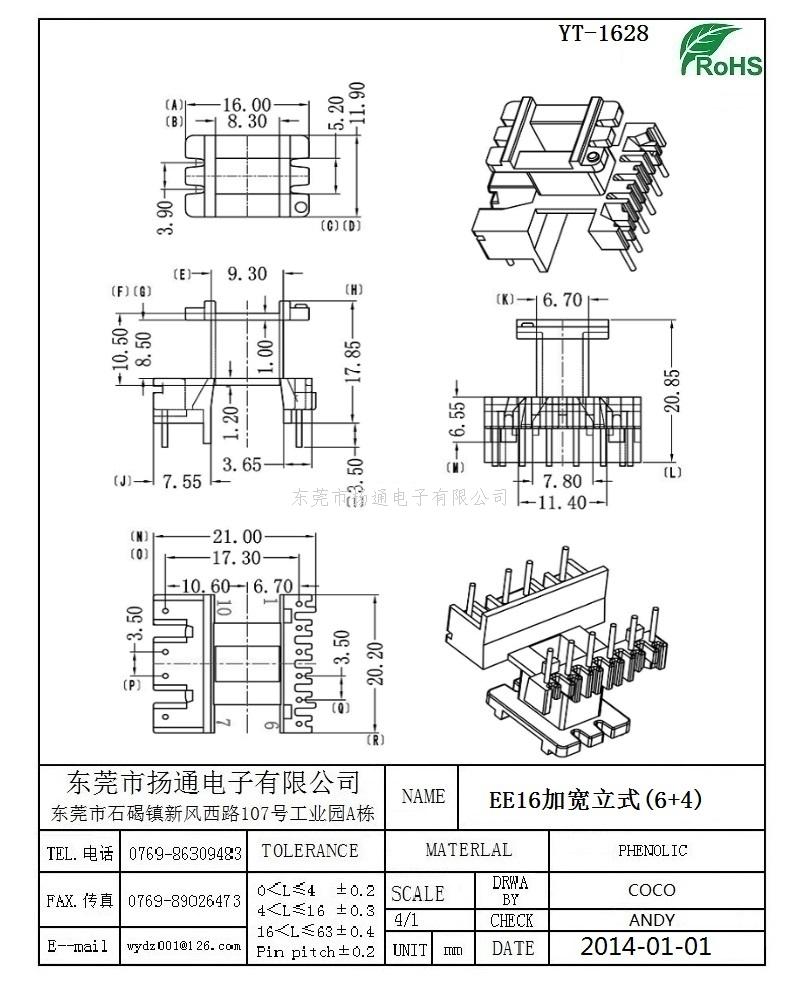 EE16变压器骨架EE16电木骨架EE16高频骨架 加宽立式6+4P YT-1628