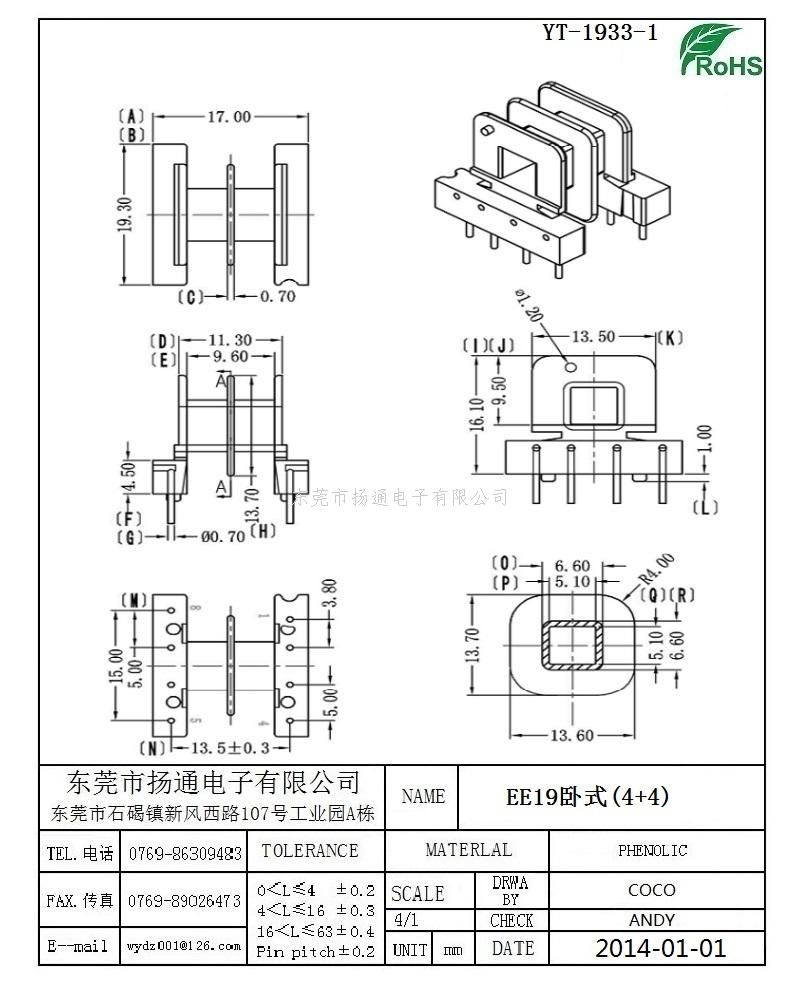 EE19变压器骨架EE19电木骨架EE19高频骨架 卧式4+4P YT-1933-1