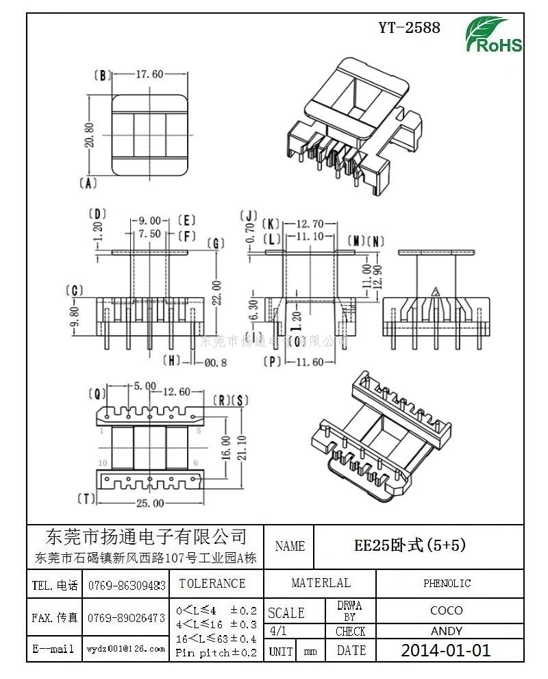 [下一个:EE25变压器骨架EE25电木骨架EE25高频骨架 卧式双槽5+5P YT-2506]