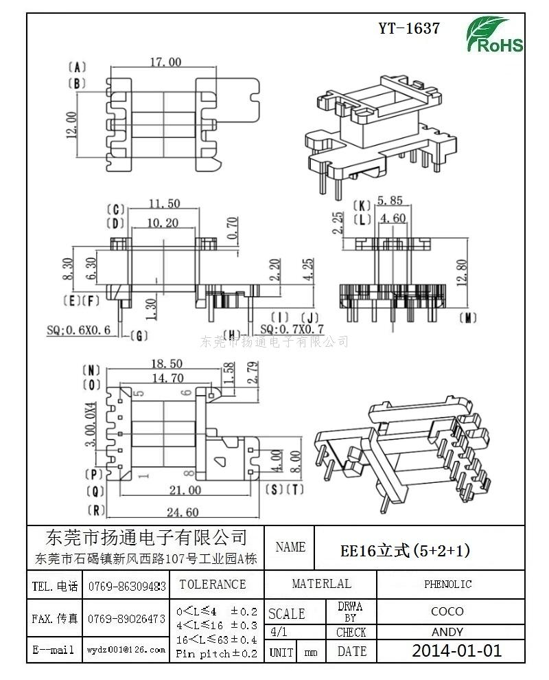 EE16变压器骨架EE16电木骨架EE16高频骨架 立式5+2+1P YT-1637