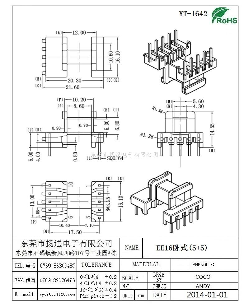EE16变压器骨架EE16电木骨架EE16高频骨架 卧式5+5P YT-1642