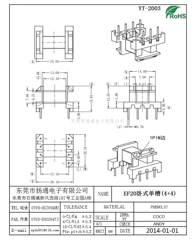 EF20变压器骨架EF20电木骨架EF20高频骨架 卧式单槽4+4P YT-2003