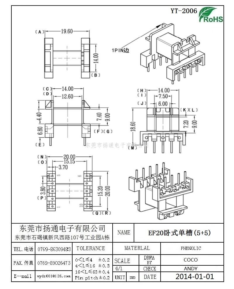 [下一个:EF20变压器骨架EF20电木骨架EF20高频骨架 卧式单槽5+5P YT-2002]