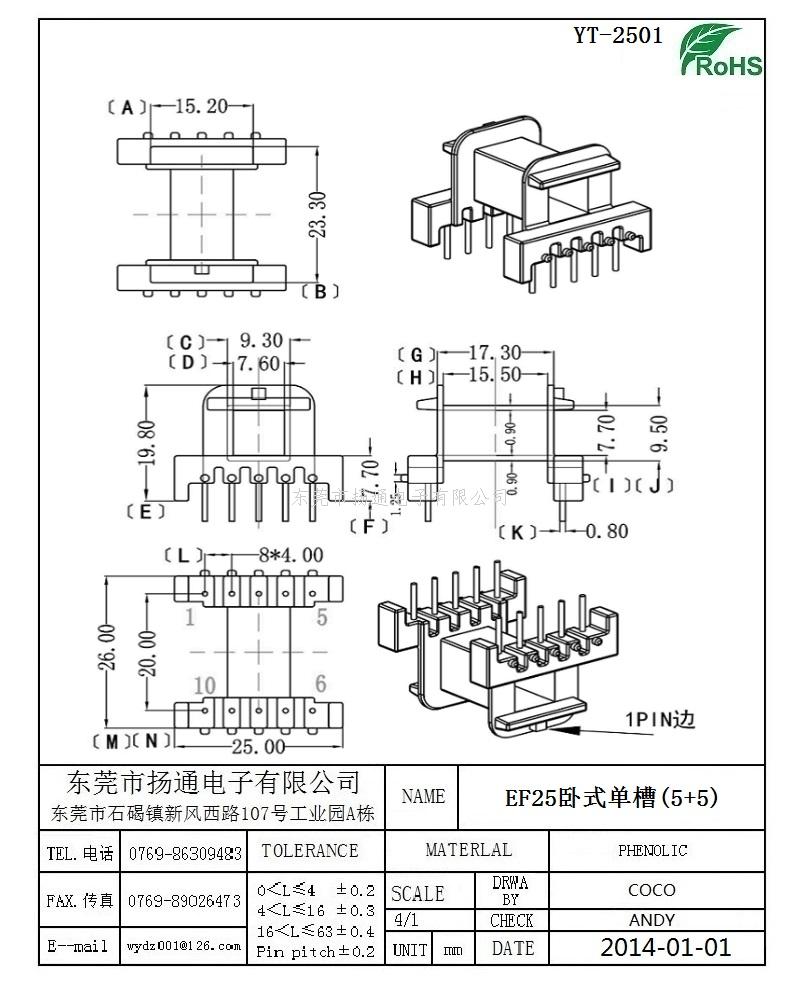 EF25变压器骨架EF25电木骨架EF25高频骨架 卧式单槽5+5P YT-2501