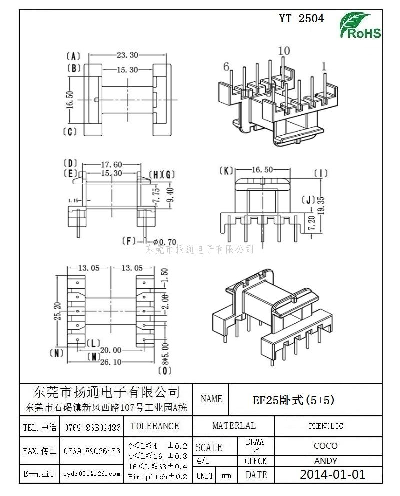 [下一个:EF25变压器骨架EF25电木骨架EF25高频骨架 卧式单槽5+5P YT-2501]