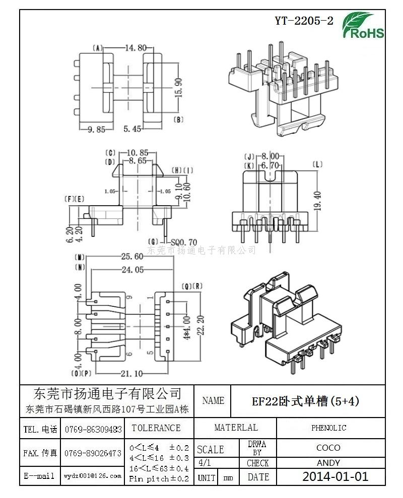 EF22变压器骨架EF22电木骨架EF22高频骨架 卧式单槽5+4P YT-2205-2