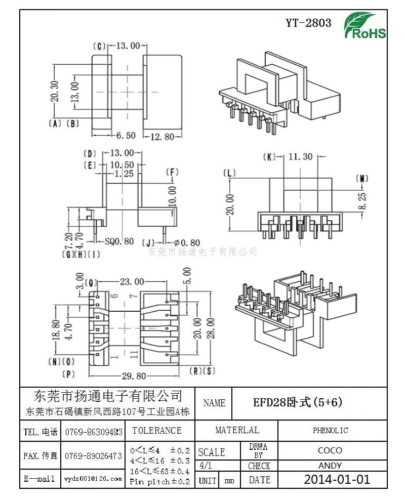 EFD28变压器骨架EFD28电木骨架EFD28高频骨架 卧式5+6P YT-2803