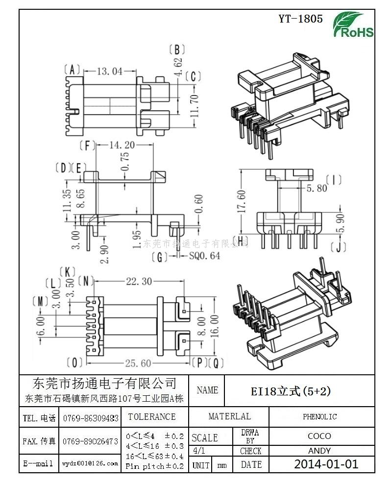EI18变压器骨架EI18电木骨架EI18高频骨架 立式5+2P YT-1805