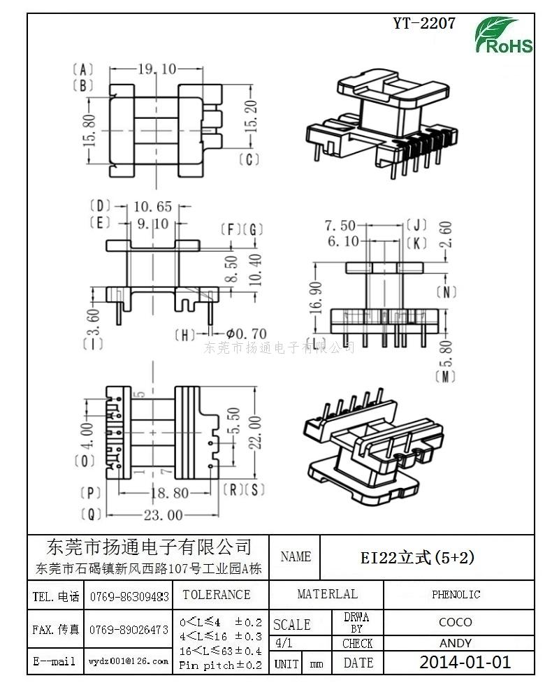 [上一个:EI22变压器骨架EI22电木骨架EI22高频骨架 立式单槽5+5P YT-2203]