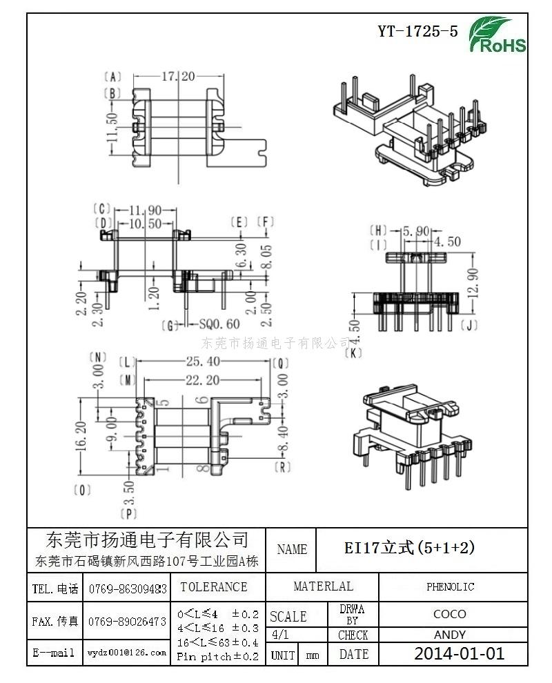 EI17变压器骨架EI17电木骨架EI17高频骨架 立式5+1+2P YT-1725-5