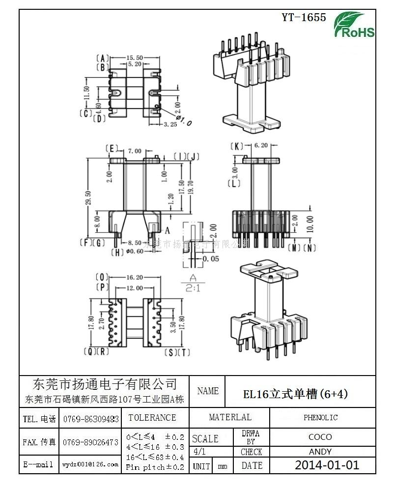 EL16变压器骨架EL16电木骨架EL16高频骨架 立式单槽6+4 YT-1655