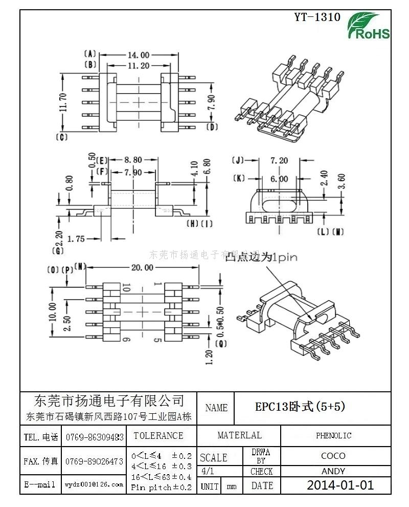 EPC13变压器骨架EPC13电木骨架EPC13高频骨架 卧式单槽5+5P YT-1310
