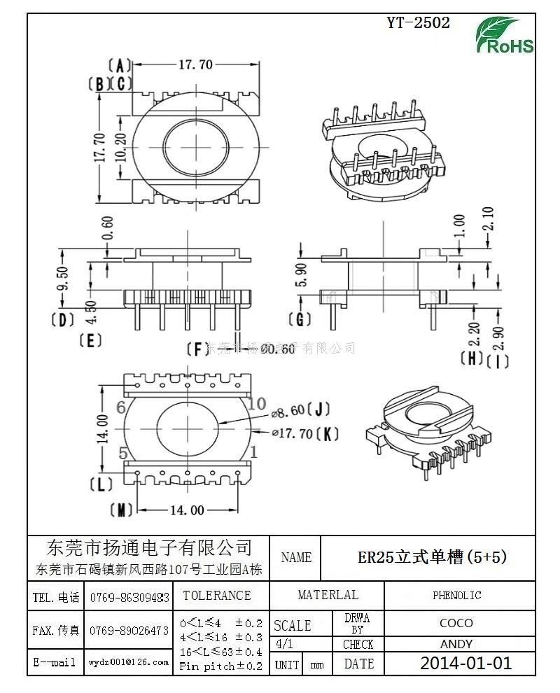 ER25变压器骨架ER25电木骨架ER25高频骨架 立式5+5 YT-2502