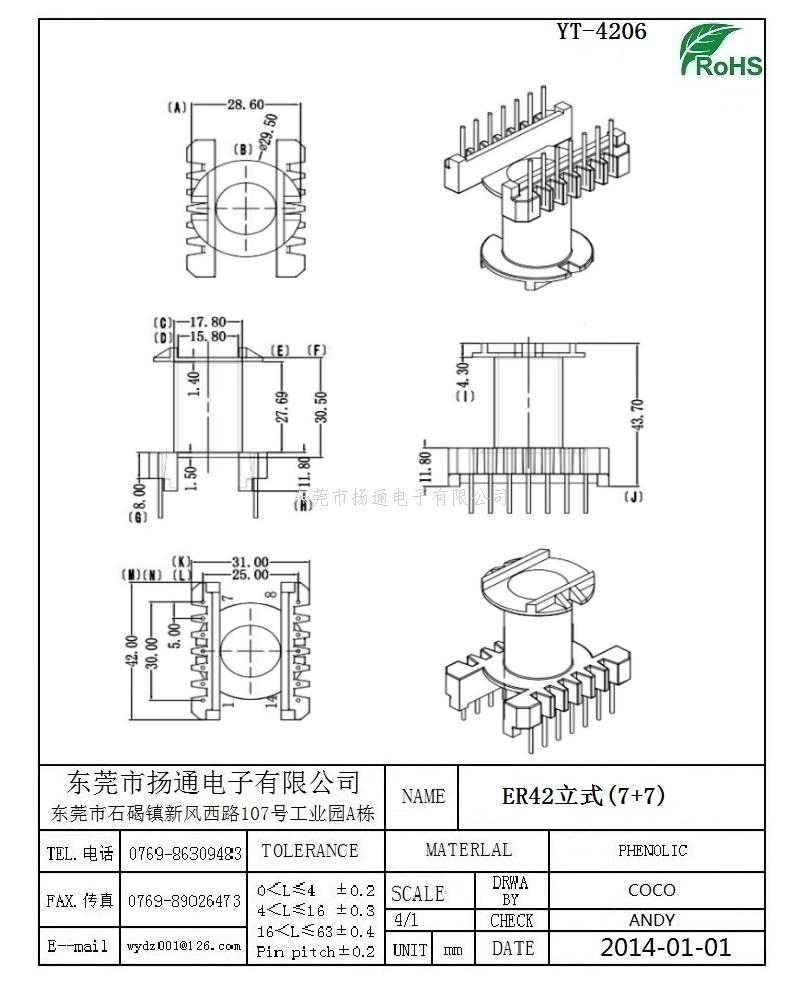 ER42变压器骨架ER42电木骨架ER42高频骨架 立式7+7 YT-4206
