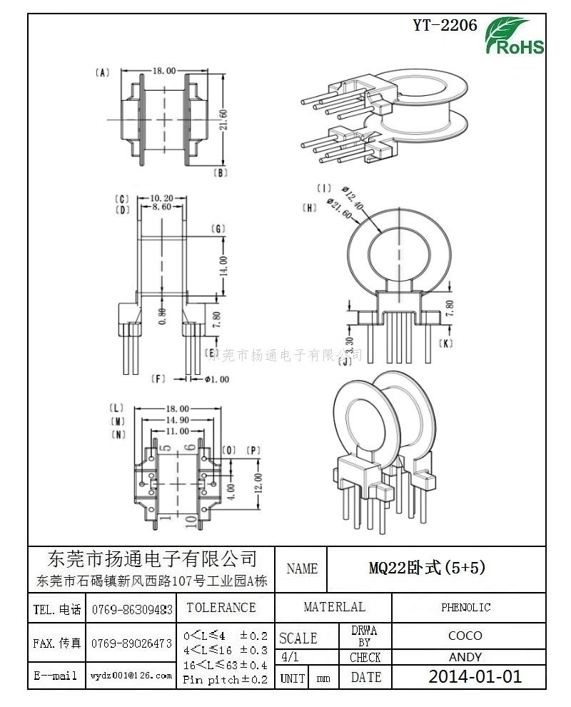 MQ22变压器骨架MQ22电木骨架MQ22高频骨架 卧式5+5 YT-2206