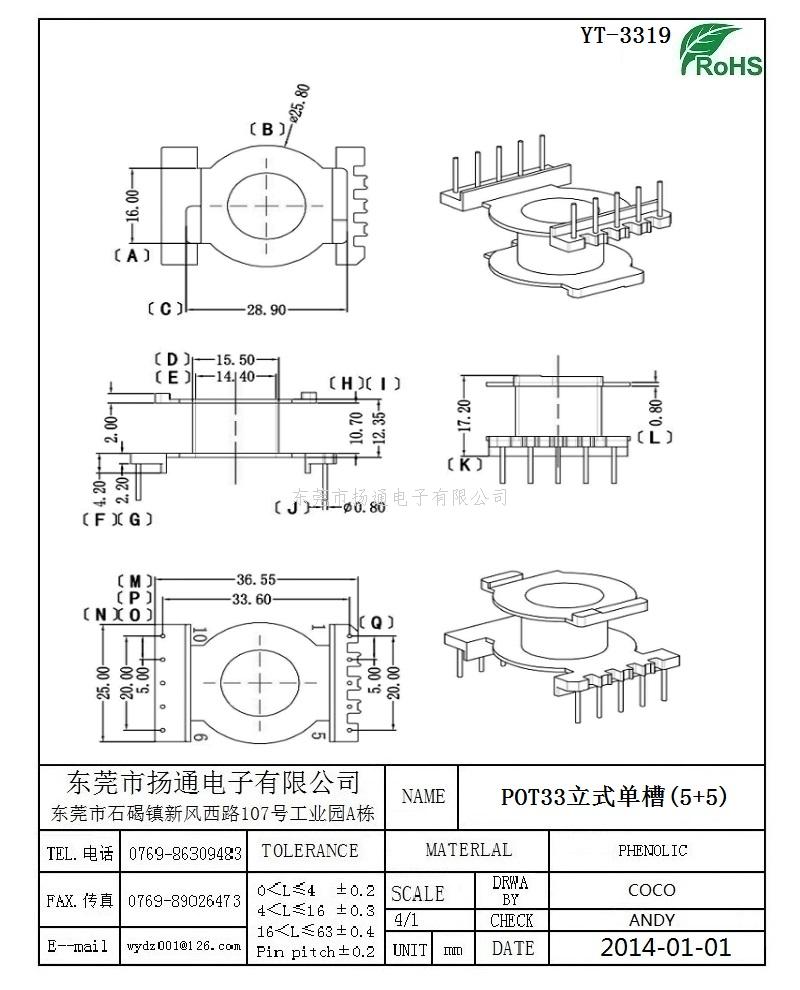 [下一个:POT33变压器骨架POT33电木骨架POT33高频骨架 卧式单槽单边5P YT-3310]