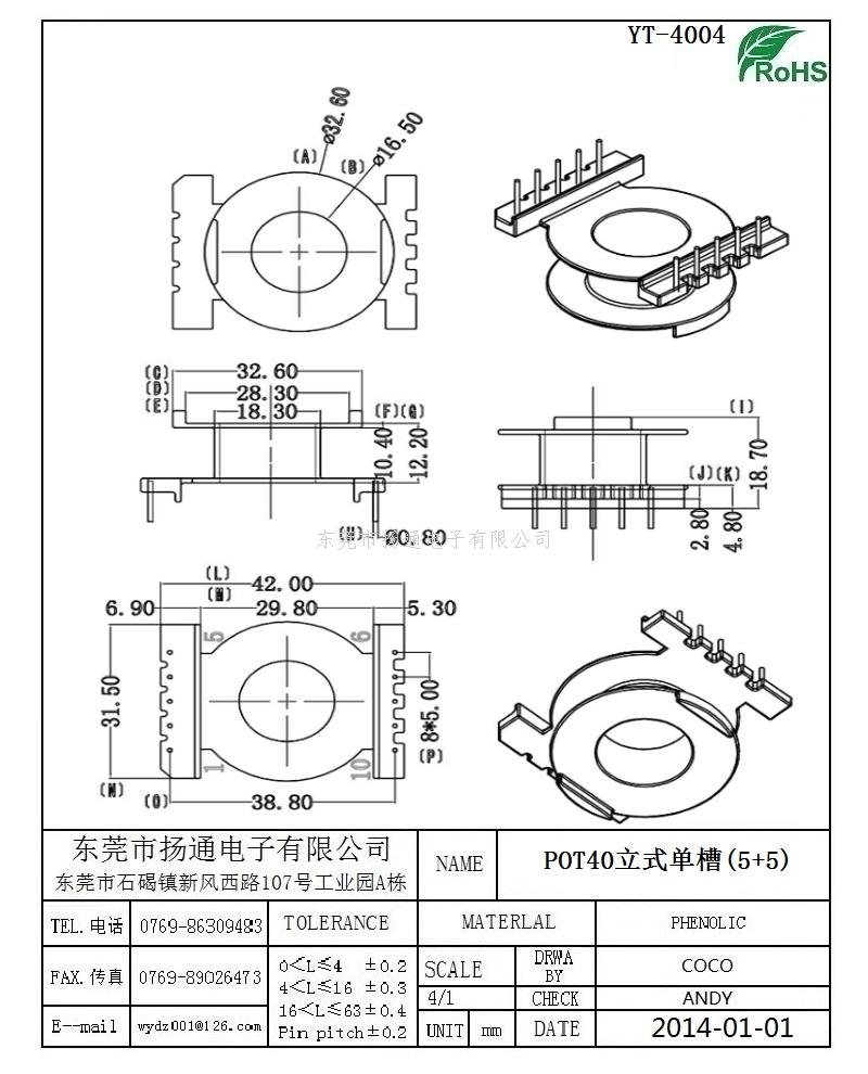 POT40变压器骨架POT40电木骨架POT40高频骨架 立式单槽5+5P YT-4004