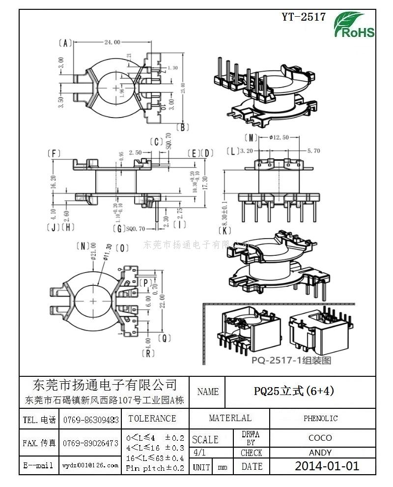 PQ25变压器骨架PQ25电木骨架PQ25高频骨架 立式6+4P YT-2517