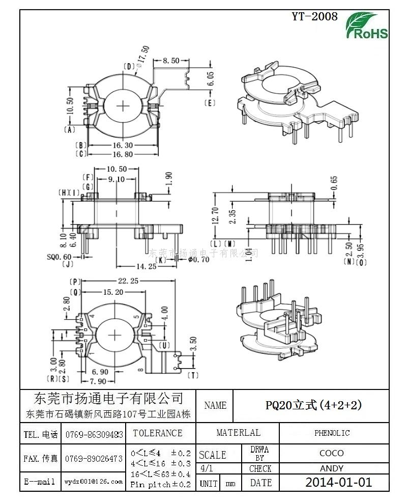 [下一个:PQ20变压器骨架PQ20电木骨架PQ20高频骨架 立式4+2+2P YT-2008-1]
