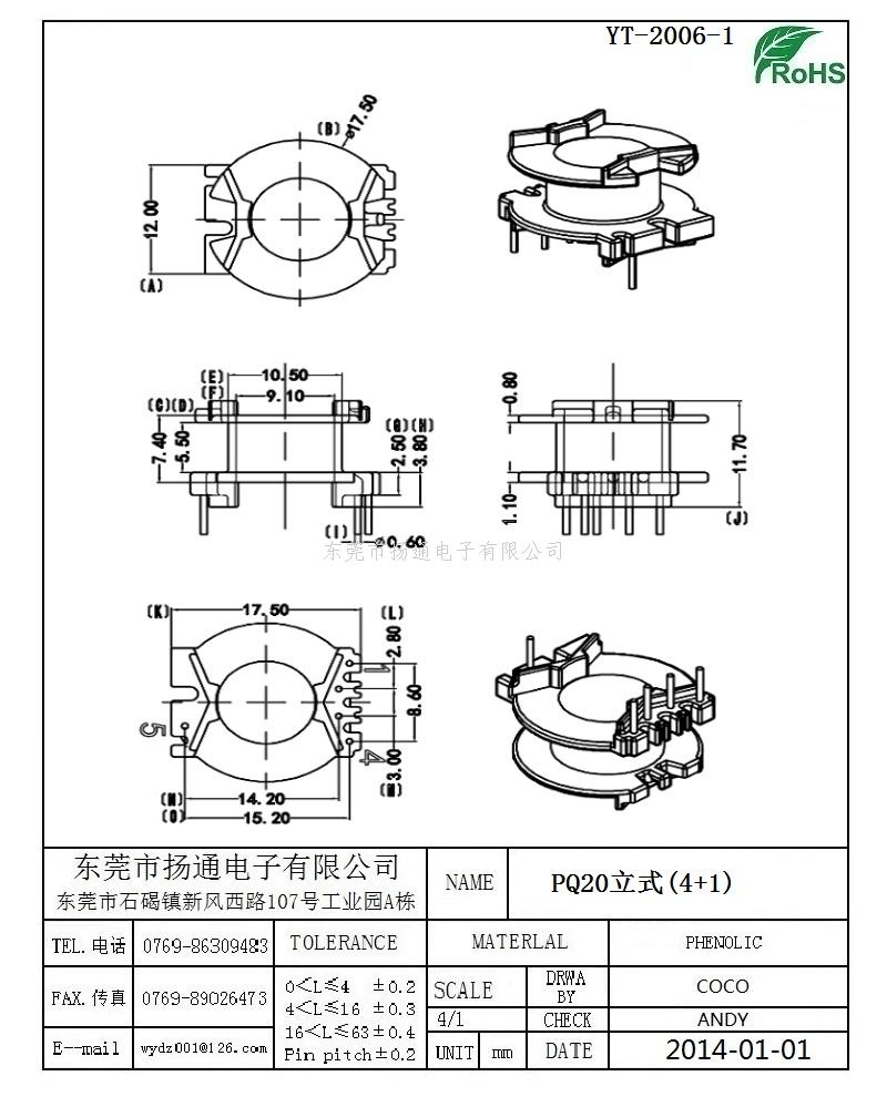 [下一个:PQ20变压器骨架PQ20电木骨架PQ20高频骨架 立式4+1P YT-2004]