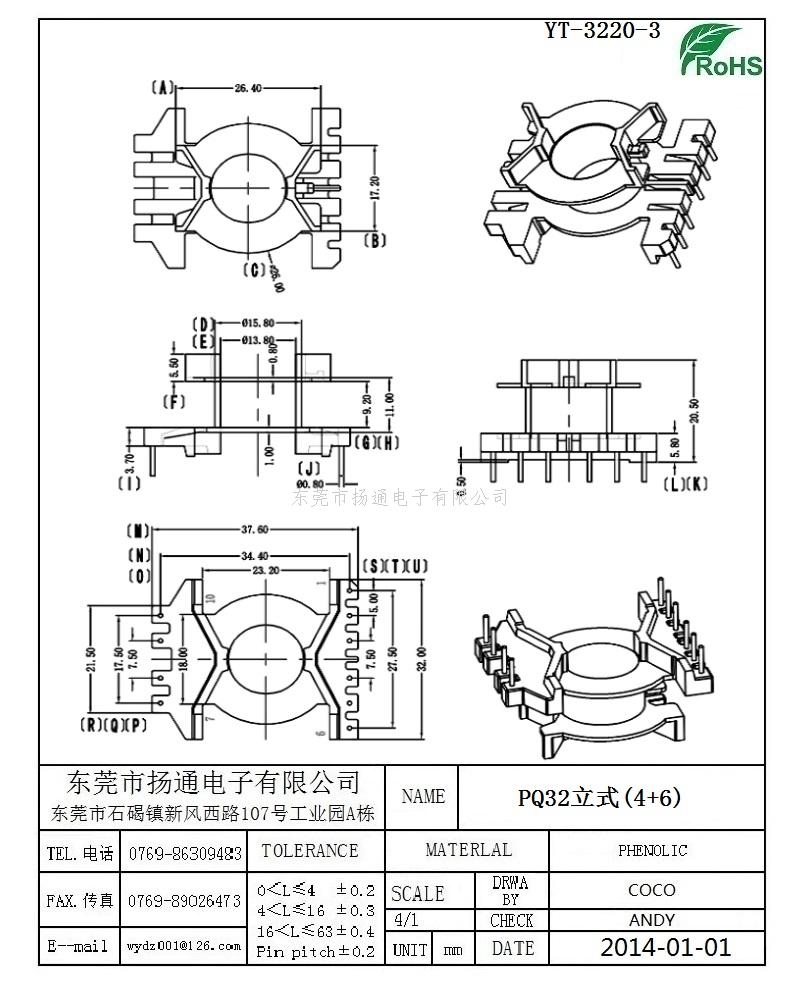 PQ32变压器骨架PQ32电木骨架PQ32高频骨架 立式4+6 YT-3220-3