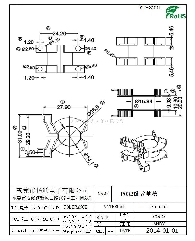 PQ32变压器骨架PQ32电木骨架PQ32高频骨架 卧式单槽 YT-3221